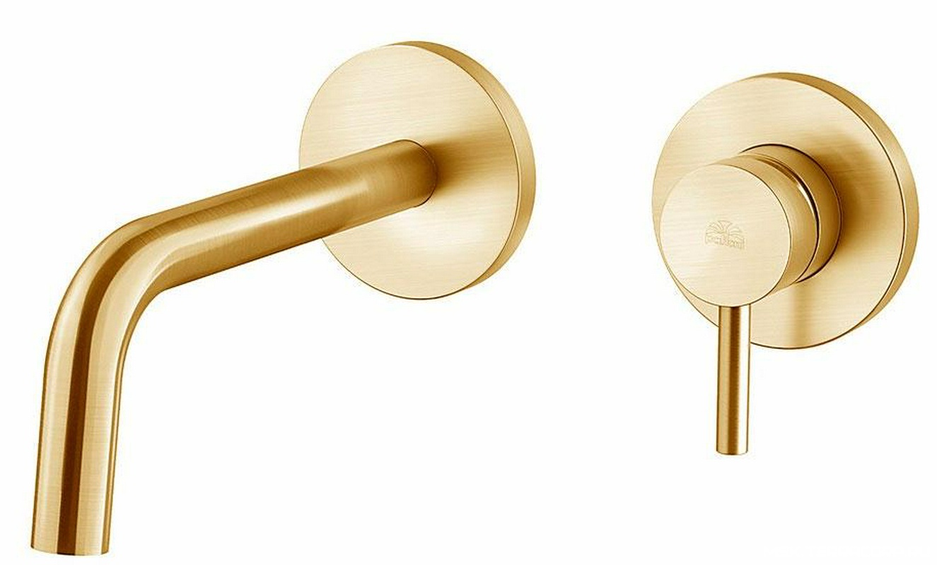 Смеситель для раковины, встраеваемый в стену, излив 18,5см, (цв.брашированное золото), Eco ZZ