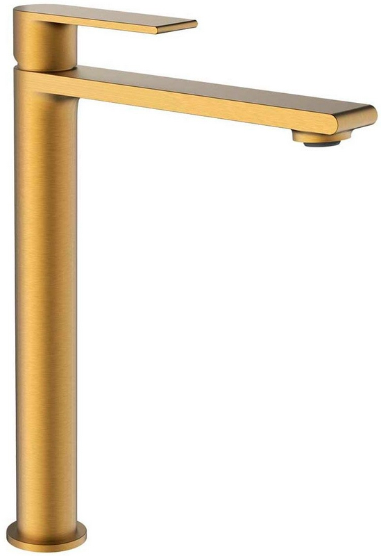 Смеситель для раковины, высокий, без донного клапана, цв.матовое золото