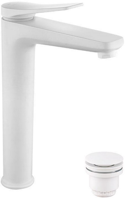 Смеситель для раковины, 260, Высокий, со сливным клапаном Push.Open, (цв.матовый белый), Finoris ZZ