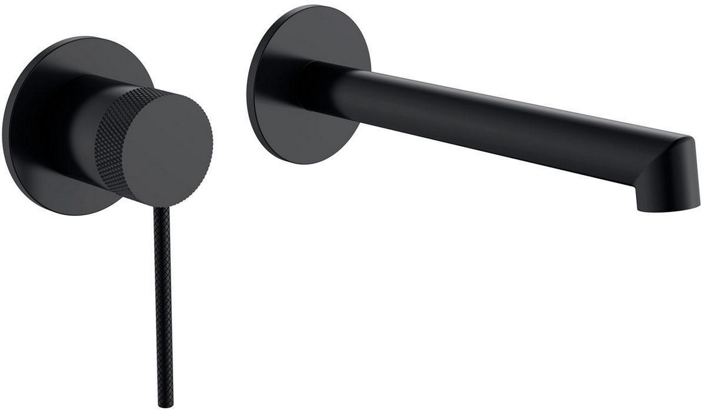 Смеситель для раковины, встраиваемый в стену, излив 195мм, встраив.часть в компл., (цв.черный матовый), Priority