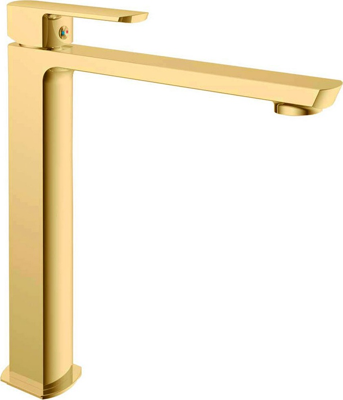 Смеситель для раковины, высокий, без донного клапана, цв.матовое золото