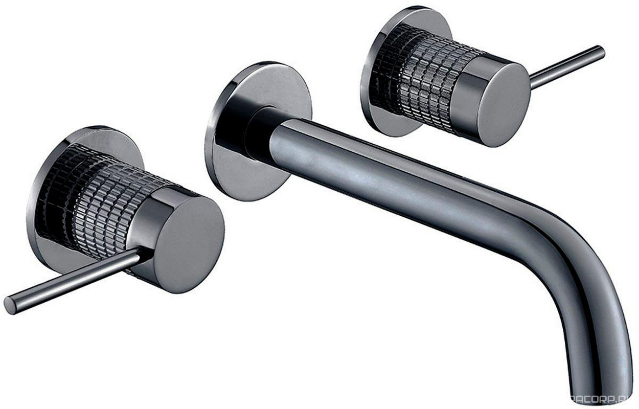 Смеситель для раковины на 2 отверстия, настенный монтаж, внутр. часть в комплекте, цв.черный