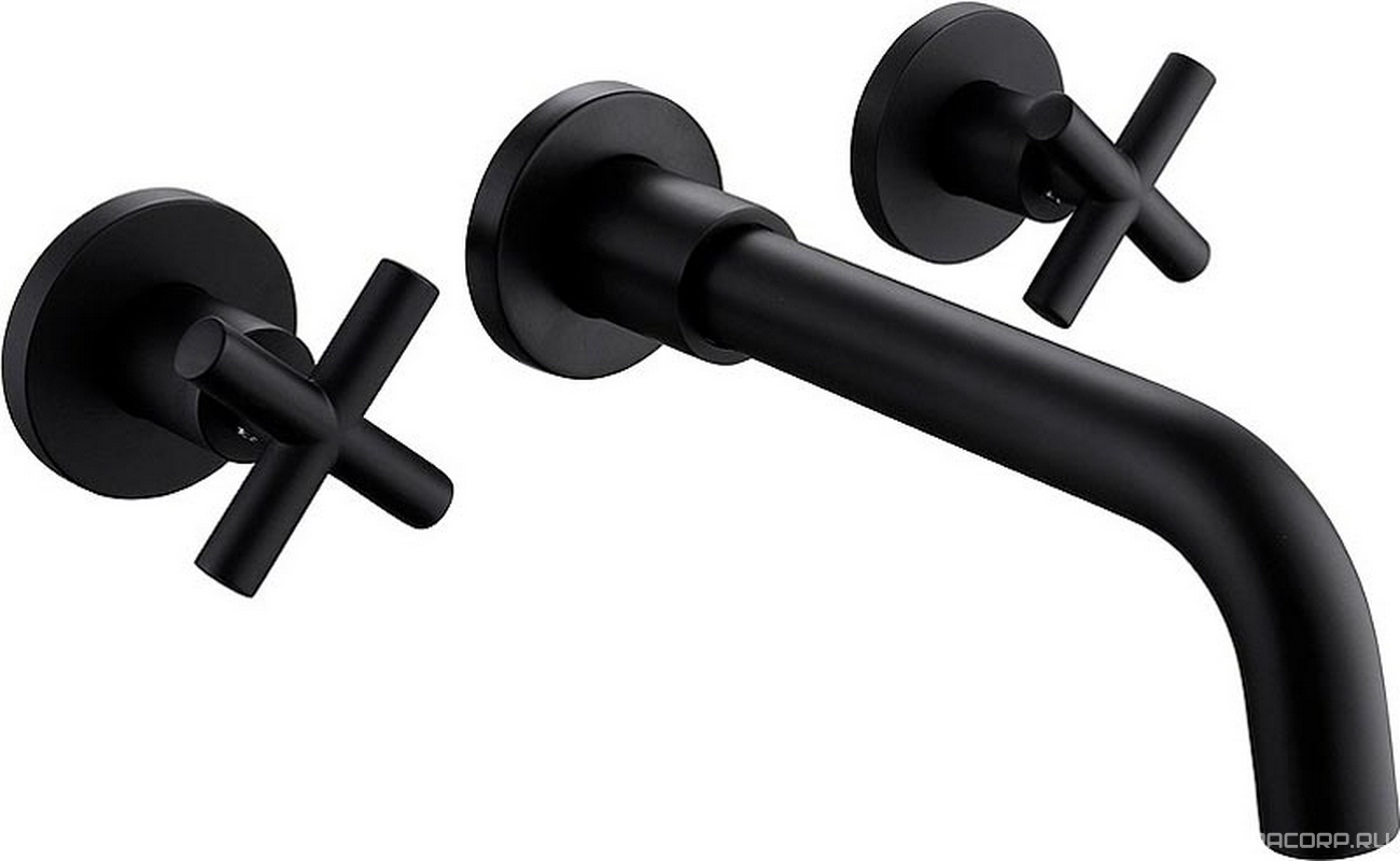 Смеситель для раковины на 2 отверстия, настенный монтаж, внутр. часть в комплекте, цв.черный