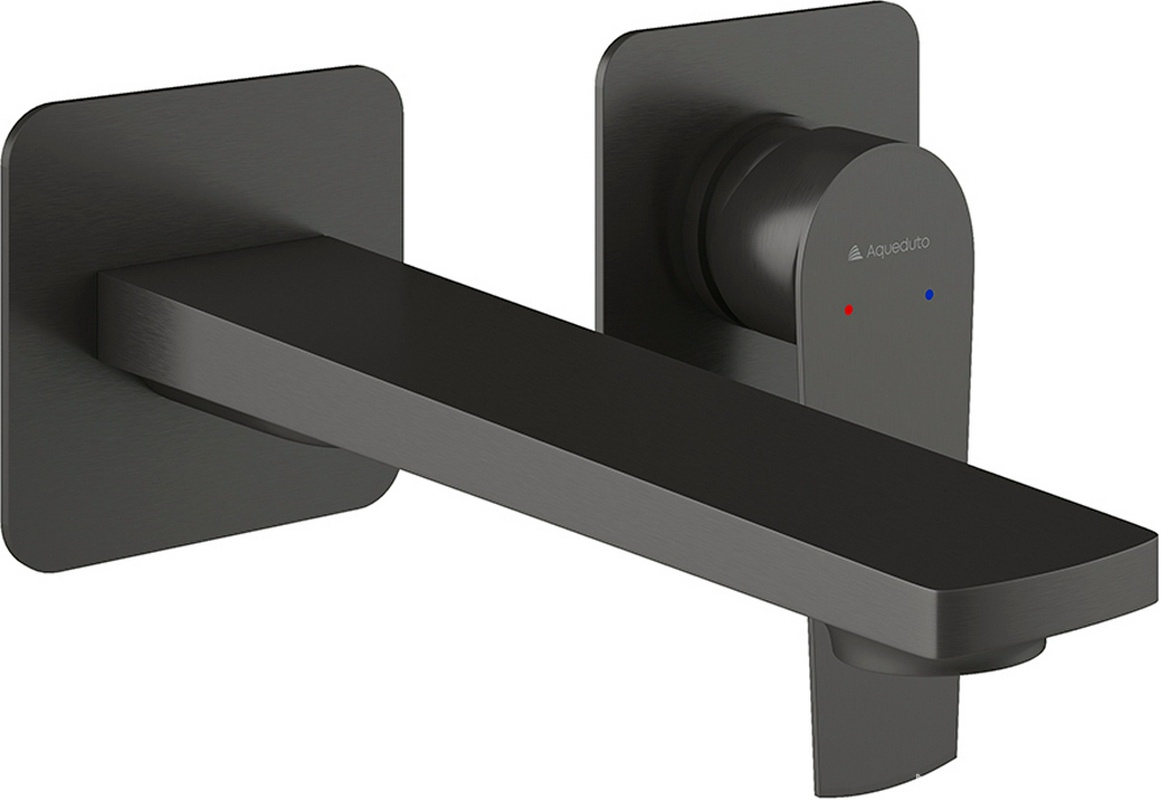 Смеситель для раковины, встраиваемый в стену, излив 190мм, встраив.часть в компл., (цв.оружейная сталь), ZZ Aqueduto LINHA LIN0445
