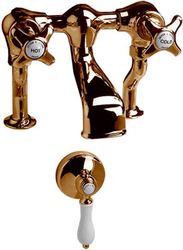 Смеситель для ванны, встраиваемый в борт на 4 отв., лейка, шланг в компл., (цв.золото), Nostalgia ZZ