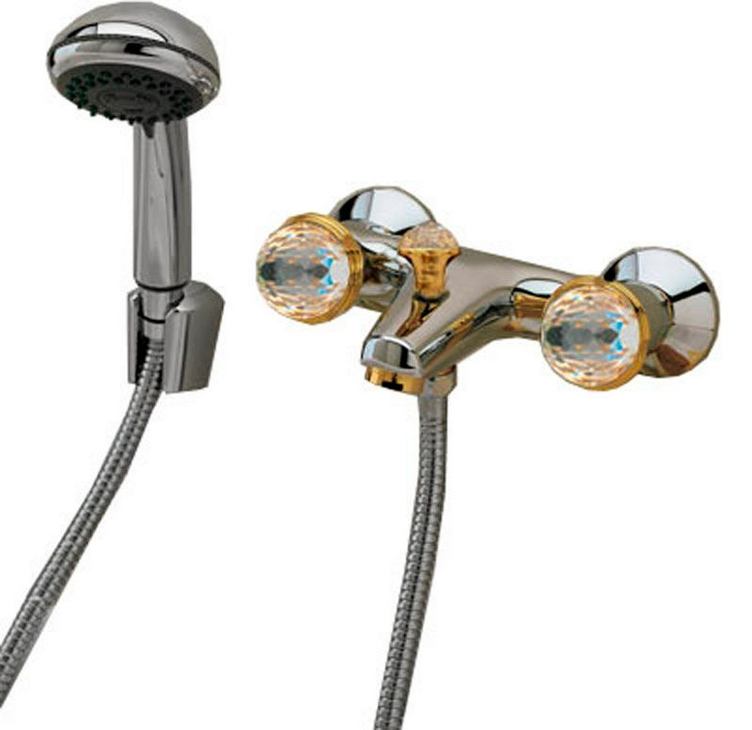 Смеситель для ванный 3M Okay Swarovski Смеситель для ванны, лейка, шланг, кронштейн в компл., (цв. хром/золото), Okay Swarovski XX