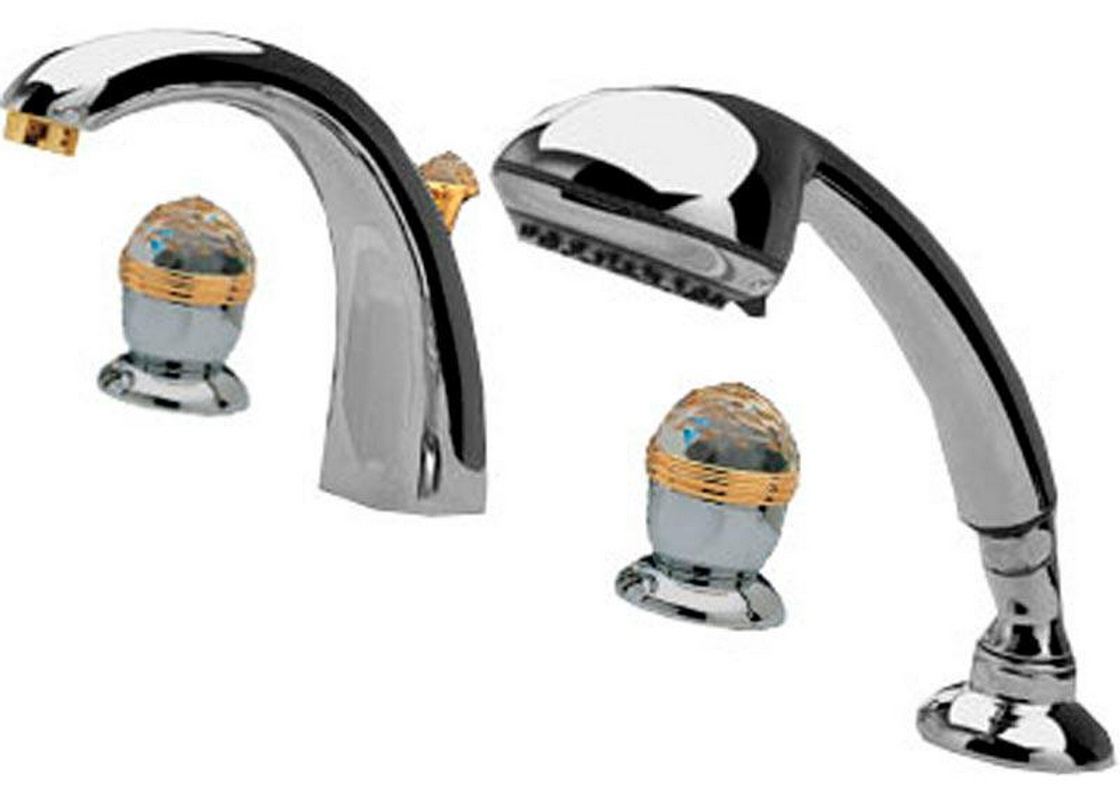 Смеситель для ванный 3M Okay Swarovski Смеситель для ванны, встраиваемый в борт на 4 отв., шланг, лейка д/д в компл., (цв. хром/золото), Okay Swarovski ZZ