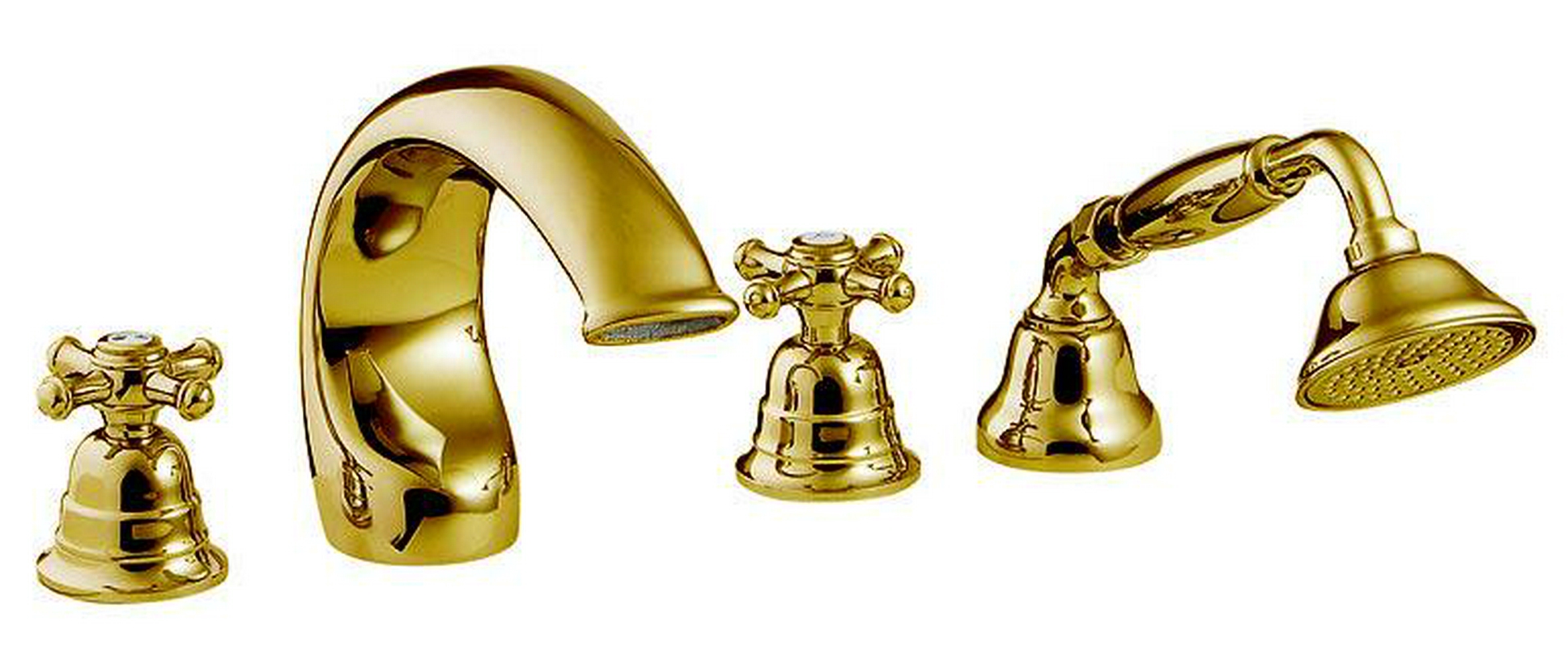 Смеситель для ванны, встраиваемый в борт ванны с душ. гарн., высокий излив на 4 отв. (золото) ZZ 3M Old italy 4471 DD