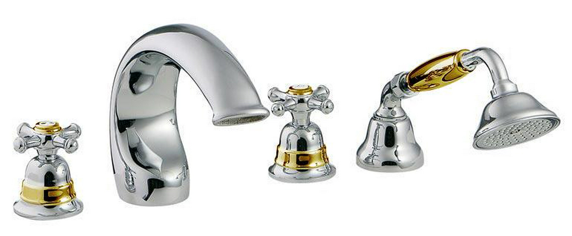 Смеситель для ванный 3M Old italy Смеситель для ванны, встраиваемый в борт ванны с душ. гарн., высокий излив на 4 отв. (хром/золото) Old italy ZZ