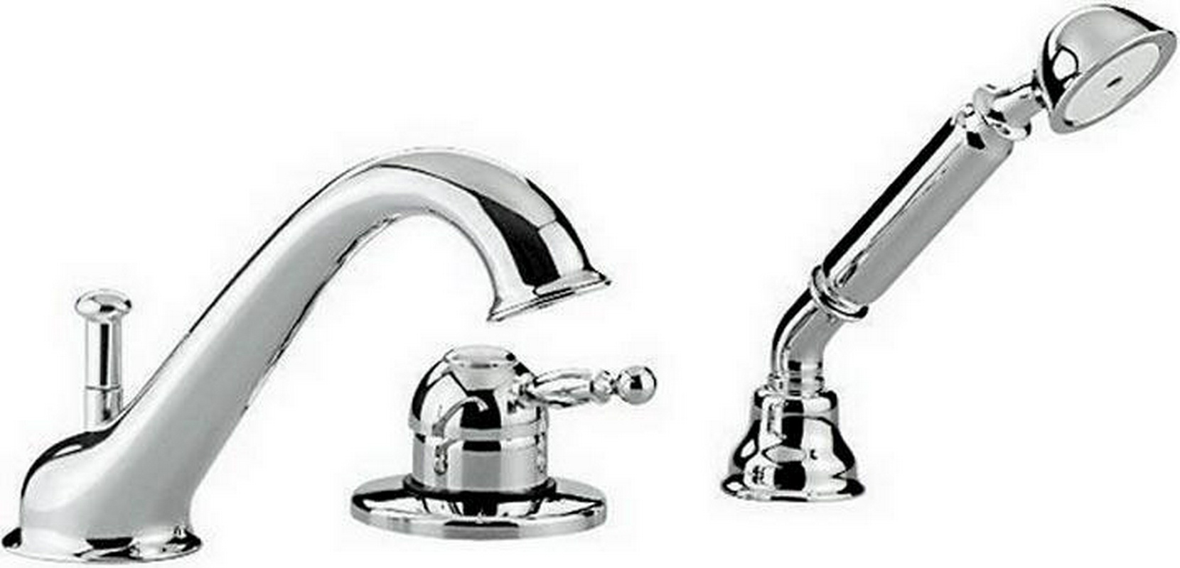 Смеситель для ванный Cisal Arcana Royal Смеситель для ванны встр. в борт, (толщ. борт. max. 8мм) на 3 отв. (шланг, лейка в компл.), (цв.хром) Arcana Royal ZZ