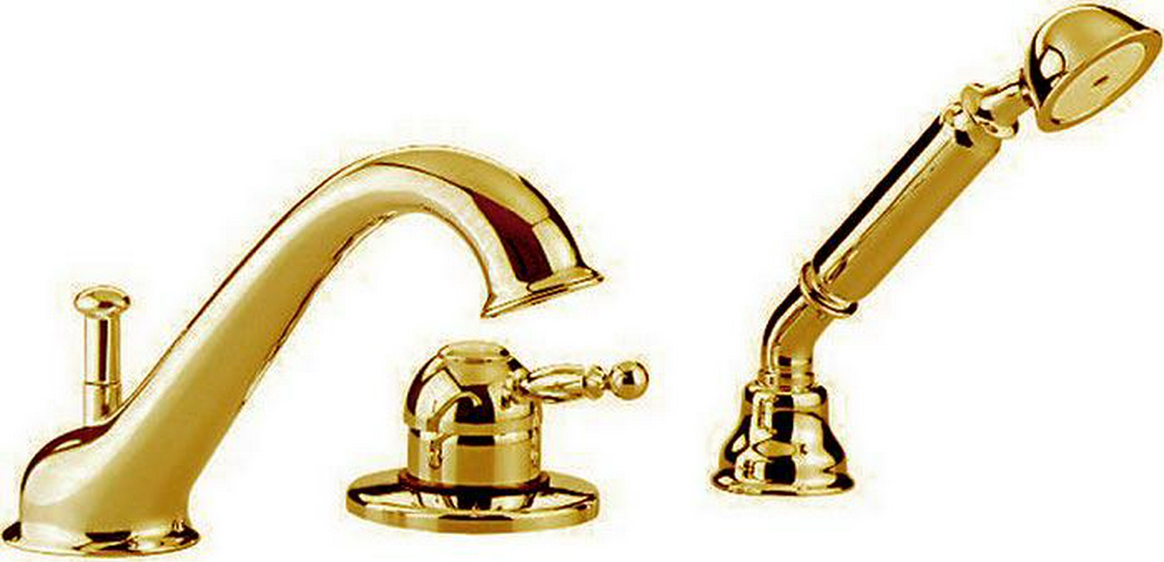 Смеситель для ванный Cisal Arcana Royal Смеситель для ванны встр. в борт, (толщ. борт. max. 8мм) на 3 отв. (шланг, лейка в компл), (цв.золото) Arcana Royal ZZ