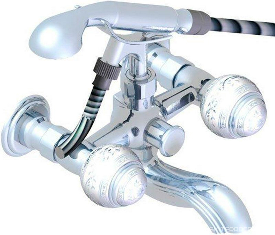 Смеситель для ванный THG Marquise Blanc Decor Смеситель на ванну со шлангом и ручн.душем (цв. хром), ручки (цв. белый / платина), Marquise blanc decor platine ZZ