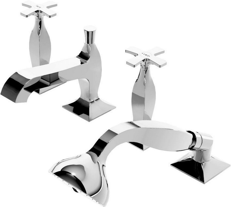 Смеситель для ванный Zucchetti Bellagio Смеситель для ванны, встраив. в борт, на 4 отв., ручки "Крест", с душевым гарнитуром, (цв.хром), Bellagio ZZ