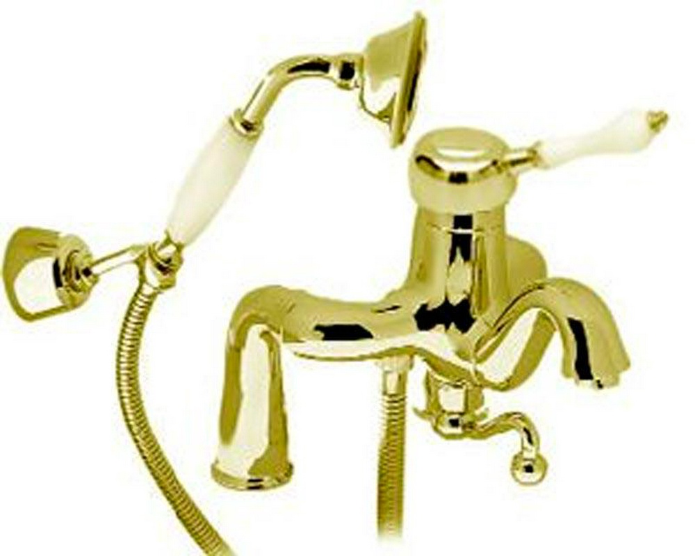 Смеситель для ванный 3M Piccadilly Смеситель д/в, встраив.в борт на 2 отв.,в компл. шланг,лейка,кронштейн,(maniglia PL / рукоятка с пластик. вставкой белого цвета),(цв.зол)Piccadilly ZZ