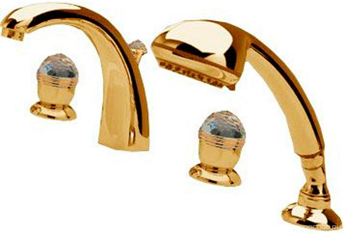 Смеситель для ванный 3M Okay Swarovski Смеситель для ванны, встраиваемый в борт на 5 отв., шланг, лейка д/д в компл., (цв. золото), Okay Swarovski ZZ