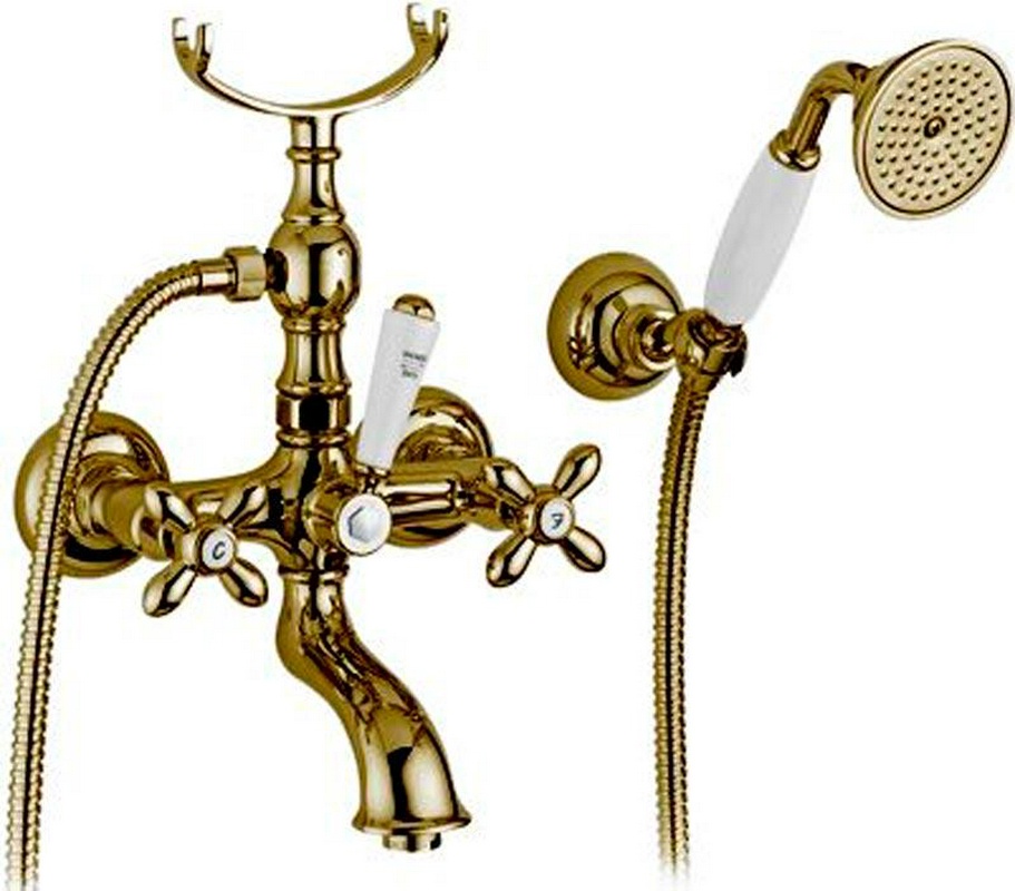 Смеситель для ванный Gaia Avebury Смеситель для ванны, (лейка, шланг, кронштейн в компл.), (цв. золото) Avebury ZZ