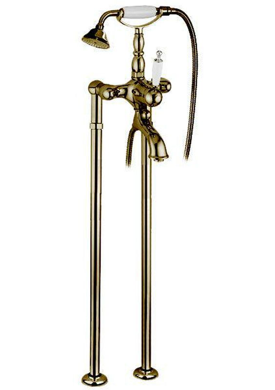Смеситель для ванный Gaia Canterbury Смеситель для ванны, напольный, трубы 2шт., лейка, шланг, кронштейн в компл., (цв. бронза, ручка цв. белый), Canterbury ZZ