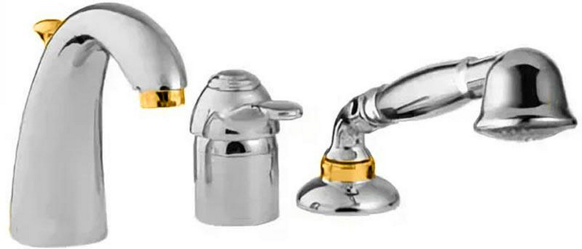 Смеситель для ванный 3M Miss Смеситель для ванны встраиваемый в борт, на 3 отв., шланг, лейка в компл.(цв.хром/золото) Miss ZZ