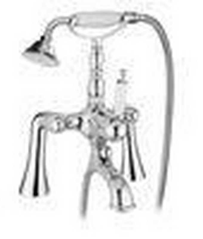 Смеситель для ванный Gaia Canterbury Смеситель для ванны, напольный, трубы 2шт., крепёж к сифону, лейка, шланг, кронштейн в компл., (цв. хром, ручка цв. белый), Canterbury ZZ