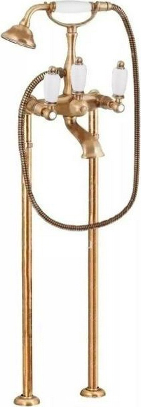 Смеситель для ванный Cezares First Смеситель для ванны, напольный, трубы 2шт., шланг, лейка в компл., (цв. бронза, ручки белые), First ZZ