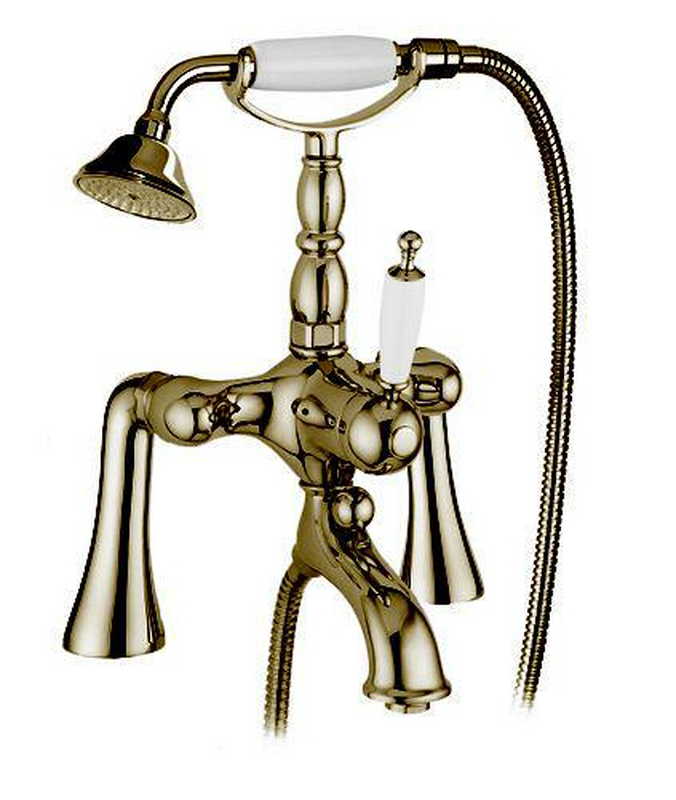Смеситель для ванный Gaia Canterbury Смеситель для ванны,встр. в борт на 2 отв. с душевым гарнитуром, (цв. бронза, ручка цв. белый), Canterbury ZZ