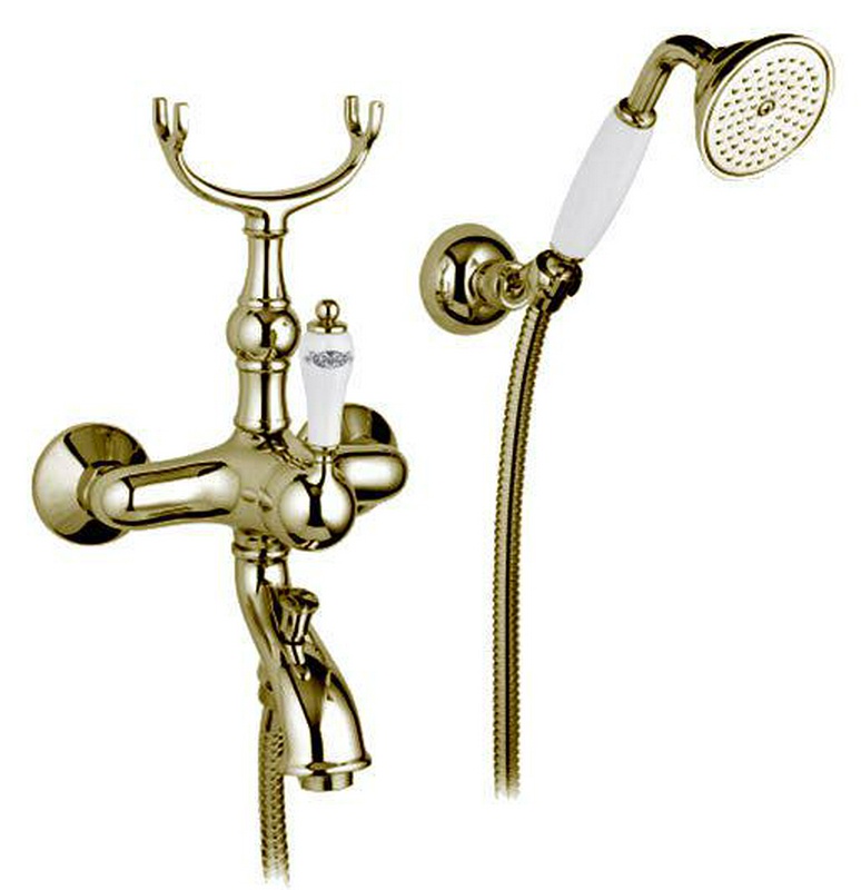 Смеситель для ванны, шланг, лейка, кронштейн в компл., (цв. золото), ZZ Gaia Phoenix RN 3302 ORO