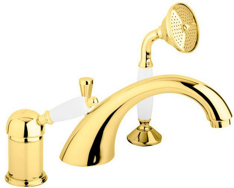 Смеситель для ванный Cezares Elite Смеситель для ванны встраиваемый в борт на 3 отв., с душевым гарнитуром (лейка, шланг), (цв.золото, ручка цв.белый), Elite ZZ