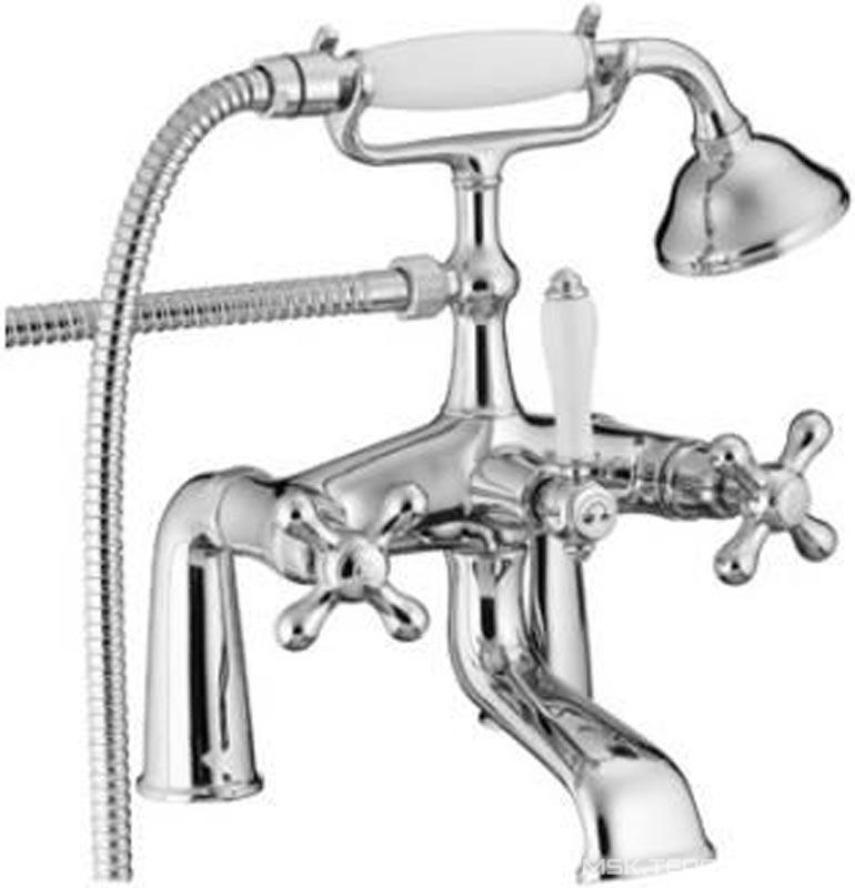 Смеситель для ванный 3M Romantica Смеситель для ванны,встраиваемый в борт на 2 отв., с душевым гарнитуром, (цв.хром/золото), Romantica ZZ