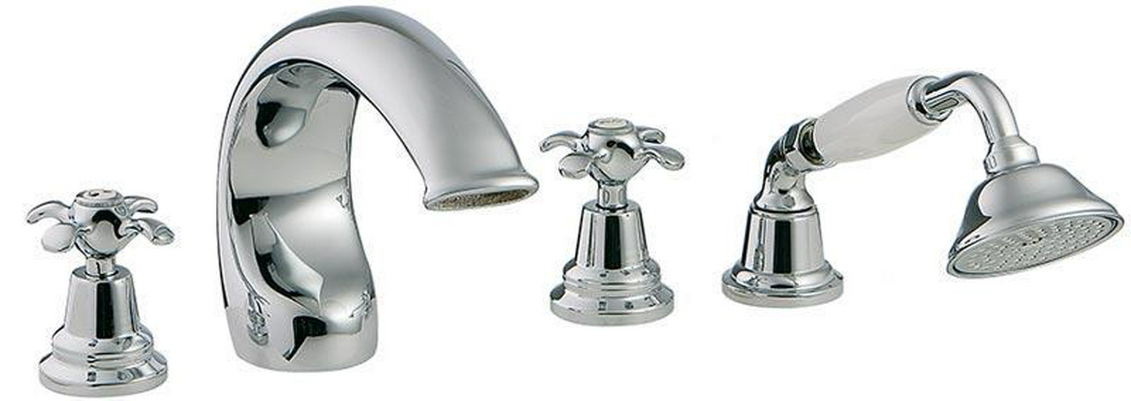 Смеситель для ванный 3M Old italy Смеситель для ванны, встр. в борт на4 отв.(цв.хром/золото), (2 ручки с белыми пласт. вставками SO - Sogno), Old italy ZZ