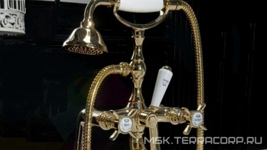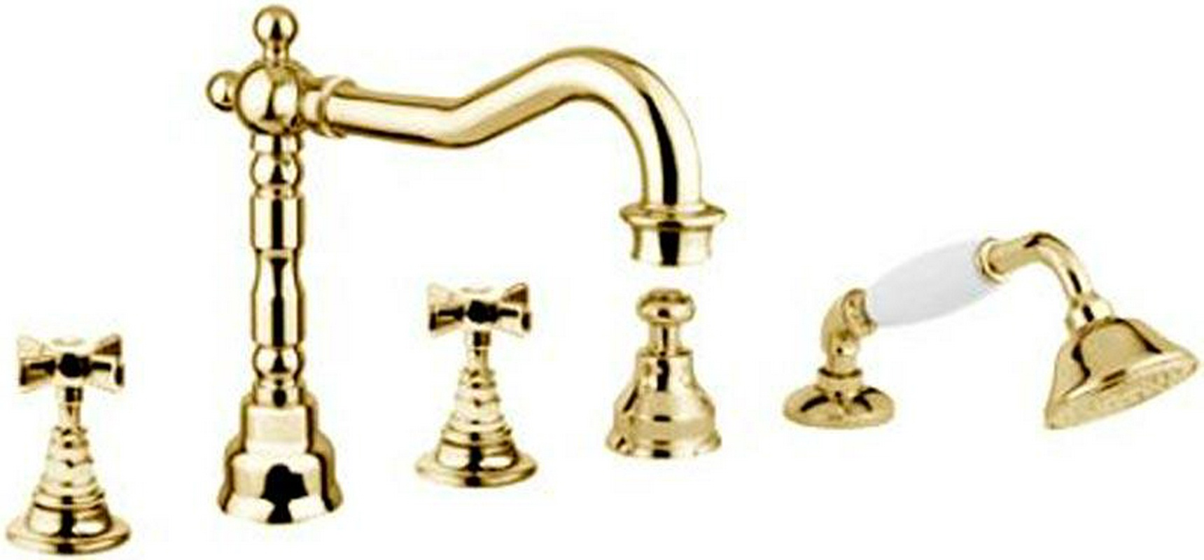 Смеситель для ванный Gaia Princeton Смеситель для ванны, встраиваемый в борт, на 5 отв., шланг, лейка в компл., (цв. золото), Phoenix ZZ