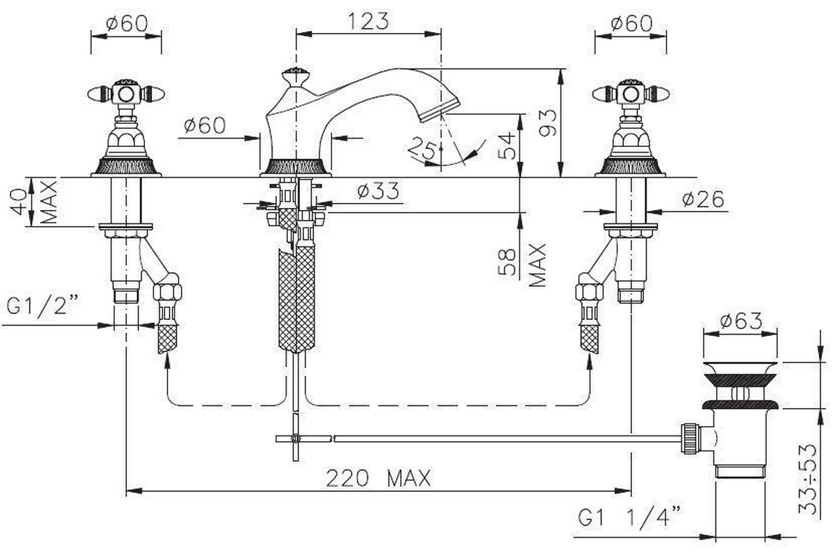Смеситель для ванны, с душевым гарнитуром (лейка, шланг в компл.), (цв.гальван.золото, ручки 36), ZZ Nicolazzi Impero 1201 GB 36
