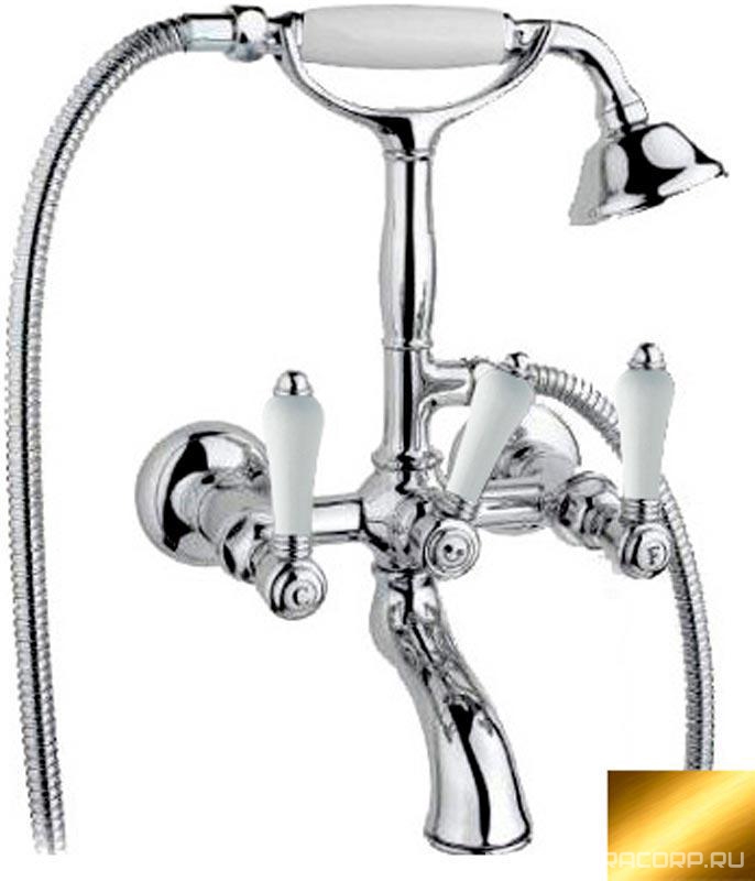 Смеситель для ванный Nicolazzi Tradizionale Смеситель для ванны с душевым гарнитуром, (цв.гальван.золото, ручки Half Dome), Nicolazzi ZZ