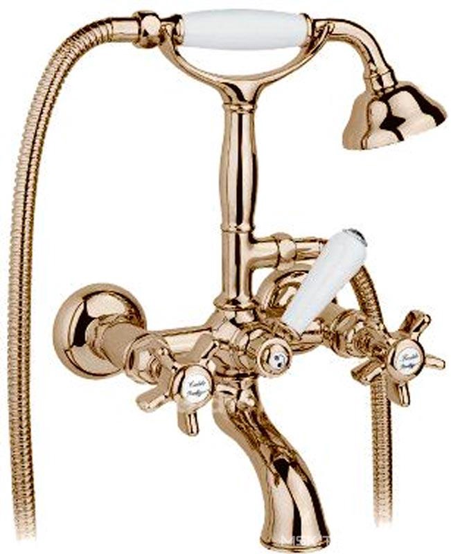 Смеситель для ванный Nicolazzi Tradizionale Смеситель для ванны с душевым гарнитуром и кронштейном д/д, (цв.бронза, ручки Half Dome), Nicolazzi ZZ