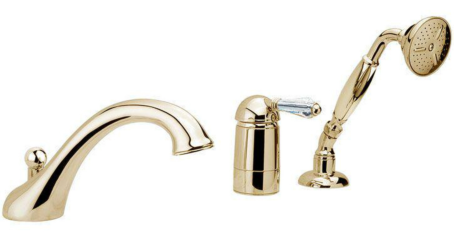 Смеситель для ванный Nicolazzi Cristallo Смеситель для ванны, встраиваемый на 3 отв., лейка, шланг в компл., (цв.золото 24k, ручка Cristallo), Nicolazzi ZZ