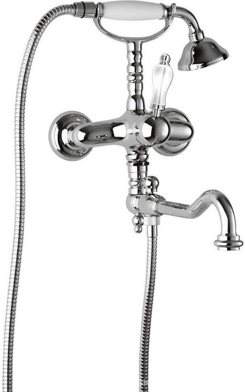 Смеситель для ванный Cezares Venezia Смеситель для ванны с душевым гарнитуром (лейка, шланг) и поворотным изливом, (цв.хром, ручка цв.белый), Venezia ZZ