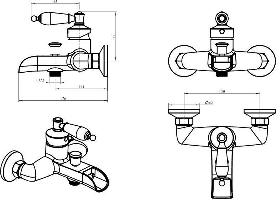Смеситель для ванный Boheme Vogue Смеситель для ванны, однорычажный, без душевого гарнитура, бронза