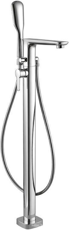 Смеситель напольный для ванны, с ручным душем и изливом, цв. хром