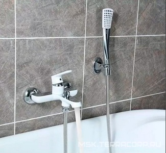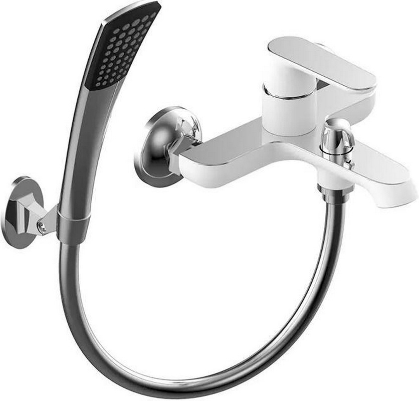 Смеситель для ванный SMARTsant Смарт-Афалина Смеситель для ванны/душа, короткий излив, с установочным комплектом, шланг и лейка в комплекте, белый/хром XX