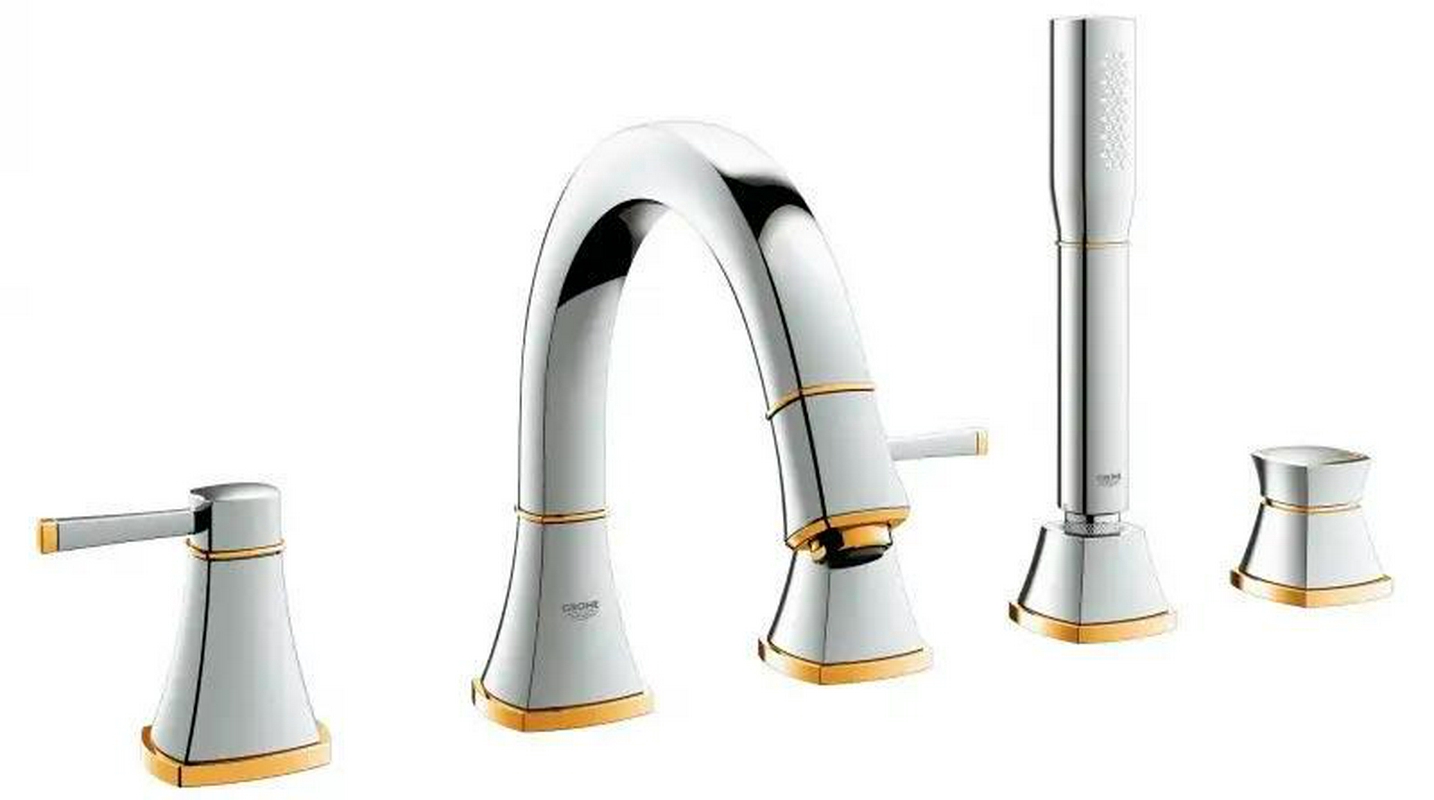 Смеситель для ванный Grohe Grandera Смеситель для ванны на борт ванны, на 5 отверстий, цв.хром/золото ZZ