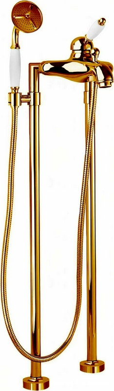 Смеситель для ванный Cezares Elite Смеситель для ванны, напольный, трубы 2шт., шланг, лейка в компл., (цв.бронза, ручка цв.белый), Elite ZZ