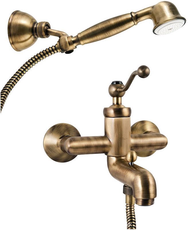 Смеситель для ванны Medici Ripresa, однорычажный, (cмеситель встроенный + верхний душ + ручной душ, с ВНУТРЕННЕЙ частью) , цв. бронза ZZ