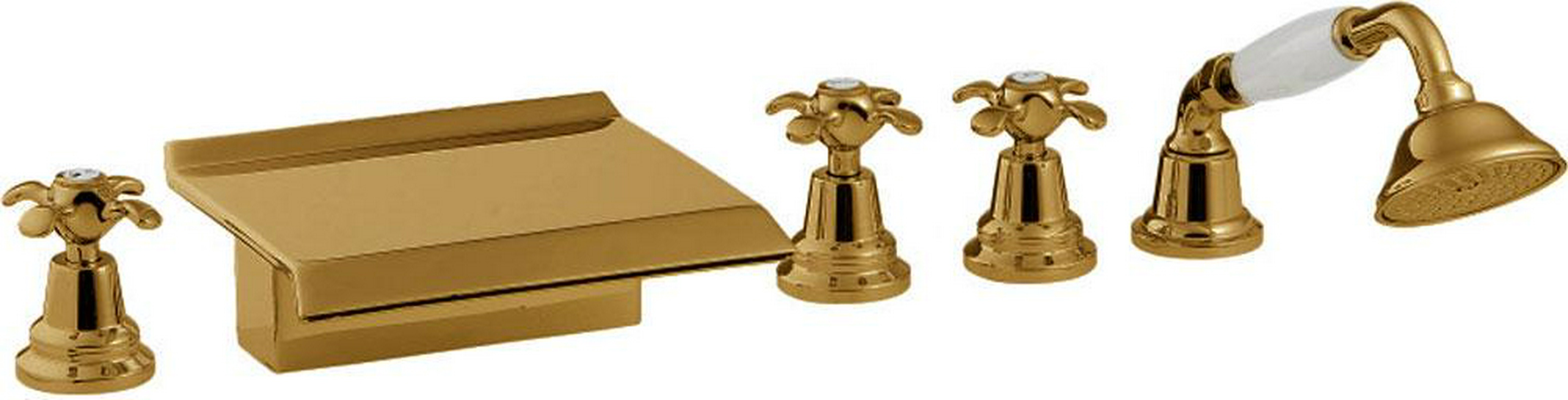 Смеситель для ванный 3M Nuova retro Смеситель для ванны, встраиваемый в борт ванны на 5 отв., излив каскад, с душ. гарнитуром, (цв.бронза), Nuova Retro ZZ