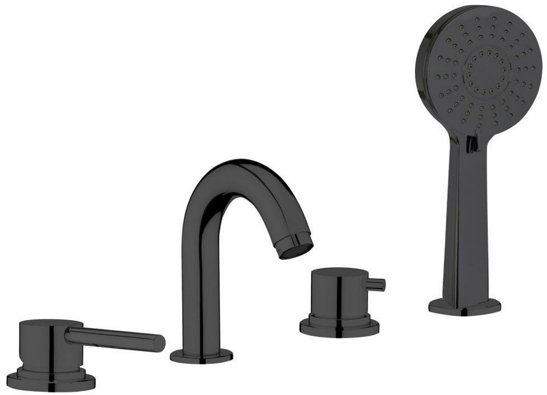 Смеситель для ванны, встраиваемый в борт на 4 отв., лейка, шланг в компл., (цв.Black Metal PVD), Origini ZZ