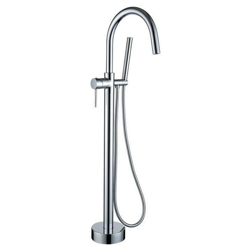 Смеситель напольный для ванны, с ручным душем и изливом, цв. хром