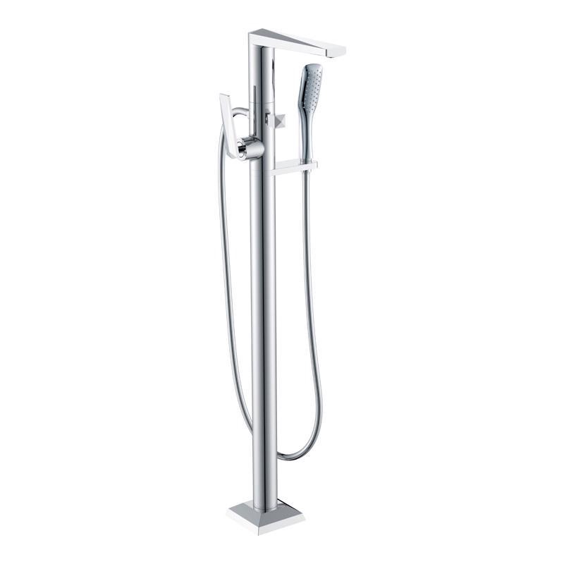 Смеситель напольный для ванны, с ручным душем и изливом, цв. хром