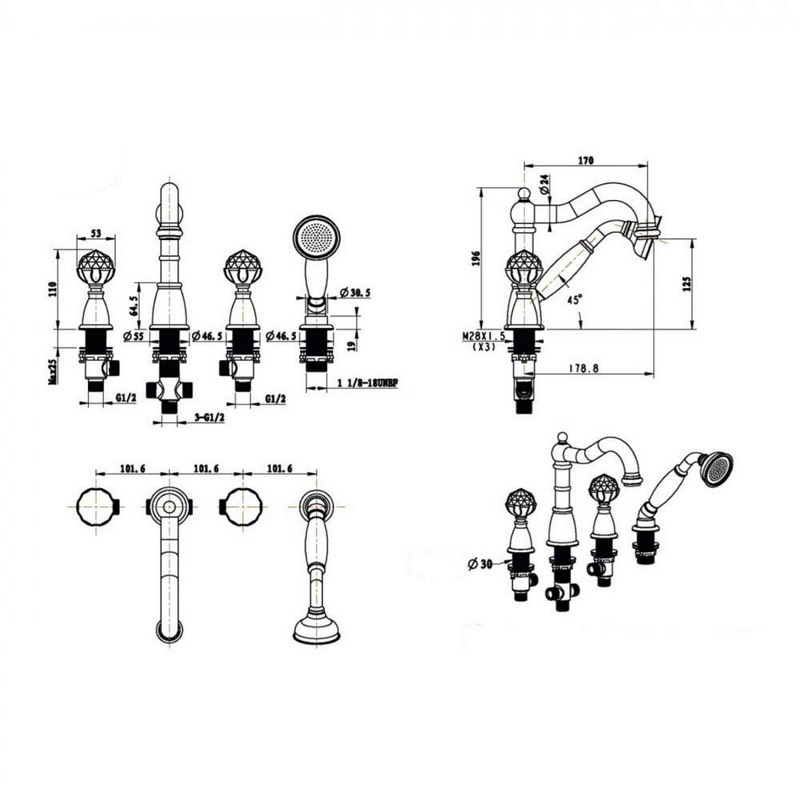 Смеситель для ванный Boheme oro Смеситель Boheme Oro 395 на борт ванны| 6x19x21