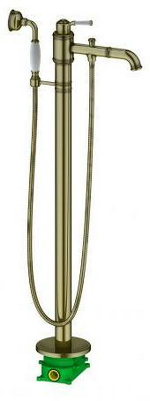 Смеситель для ванны, напольный, трубы 2шт., с кронштейном д/слива-перелива, шланг, лейка в компл., (цв. бронза ), Golf ZZ