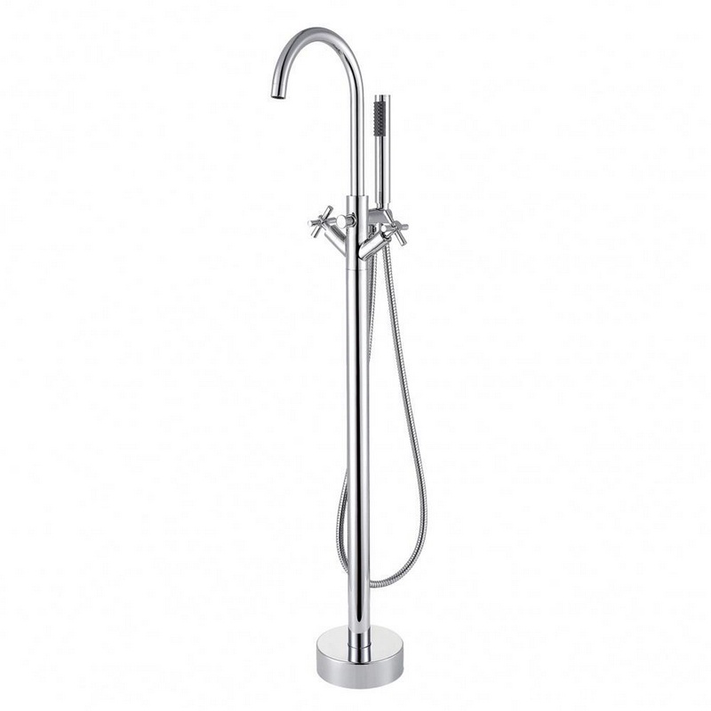 Смеситель напольный для ванны, с ручным душем и изливом, цв. хром