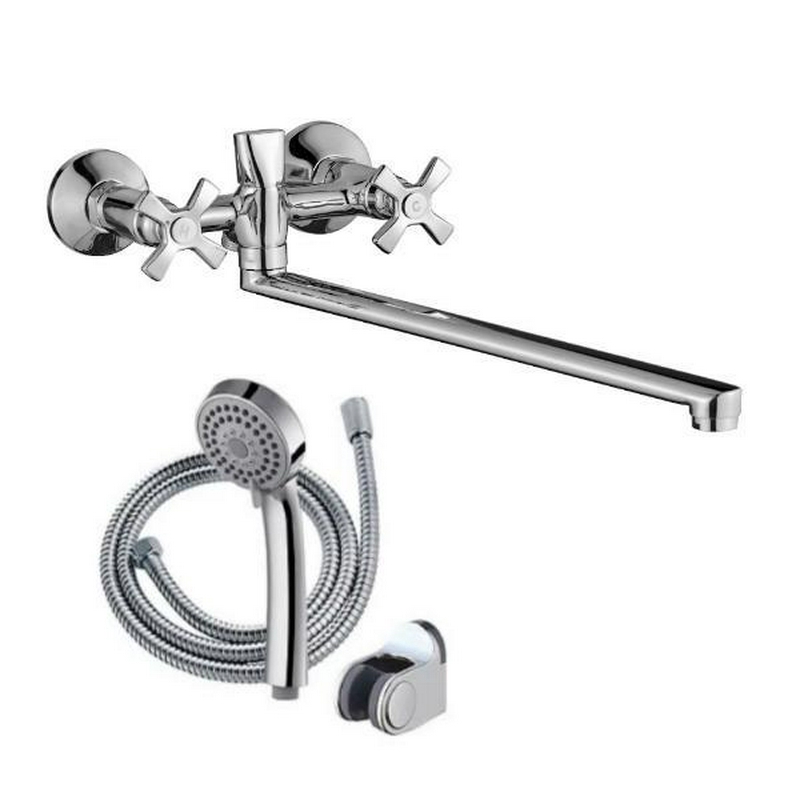 Смеситель для ванны/душа Like, с установочным комплектом, шланг, лейка, смеситель в компл, хром