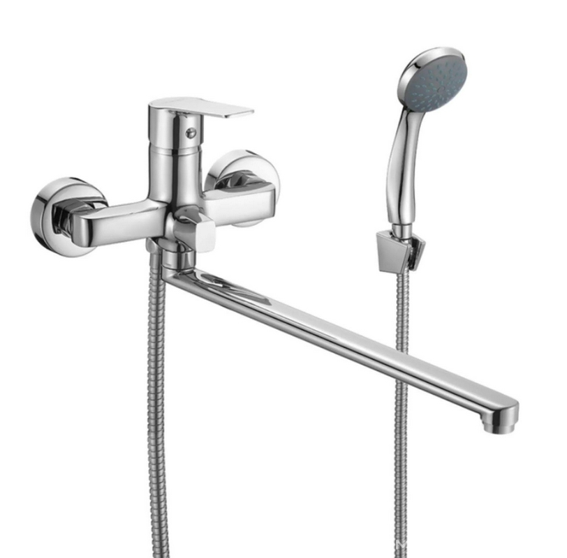Смеситель для ванны/душа Like, с установочным комплектом, шланг, лейка, смеситель в компл, хром